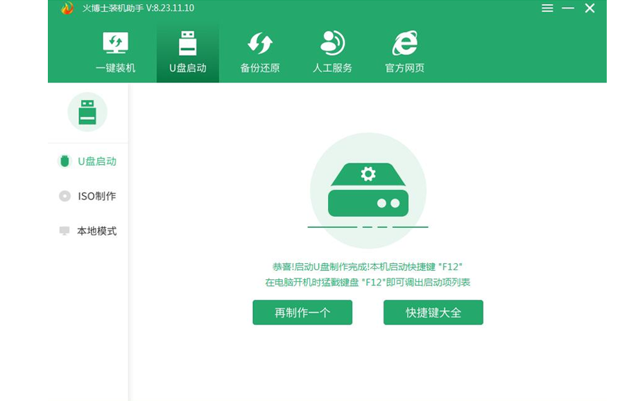 制作完成。启动U盘已经完成制作,您可以点击“启动键查询”查看快捷键,然后就可以进入U盘PE系统安装系统了。
